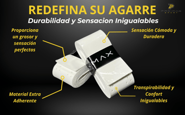 Agarre superior: Los overgrips PRO-MAX Sport están diseñados para proporcionar un agarre superior para tu pala de pádel. Este agarre superior te permite mantener un control preciso en cada golpe, lo que se traduce en una mayor precisión en tus tiros. El diseño especial de la superficie de los overgrips PRO-MAX Sport te brinda un agarre firme y antideslizante, lo que te permitirá disfrutar de un juego de pádel más seguro y efectivo.