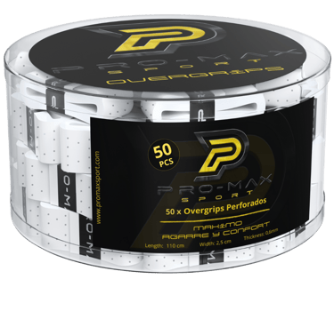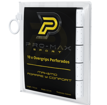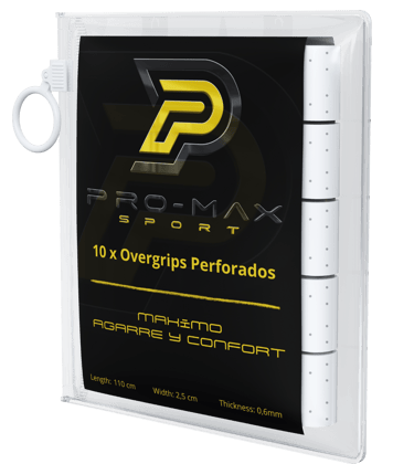 Los Overgrips perforados de la marca PRO-MAX Sport ,son una excelente opción para mejorar tu juego . Con su agarre superior, te permiten mantener un control preciso en cada golpe, lo que se traduce en una mayor precisión en tus tiros. Además, su diseño perforado te proporciona una mayor ventilación, manteniendo tus manos secas y libres de sudor durante todo el partido.